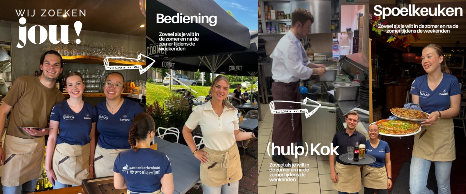 Of je nu de show steelt in de bediening, pannenkoeken bakt als een pro in de keuken of gasten welkom heet als een echte gastheer/gastvrouw bij ons draait alles om beleving. Geen dag is hetzelfde in ons knusse, drukbezochte restaurant.